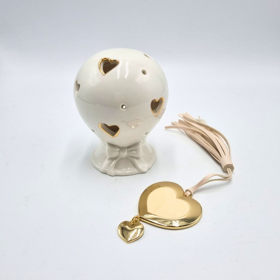 €15,00€15,00 €20,00/Set composto da: Mongolfiera in ceramica con luce led (batterie incluse) (h 10 cm); segnalibro ciondolo cuore in metallo con nappina in ecopelle (dimensione cuore 5...