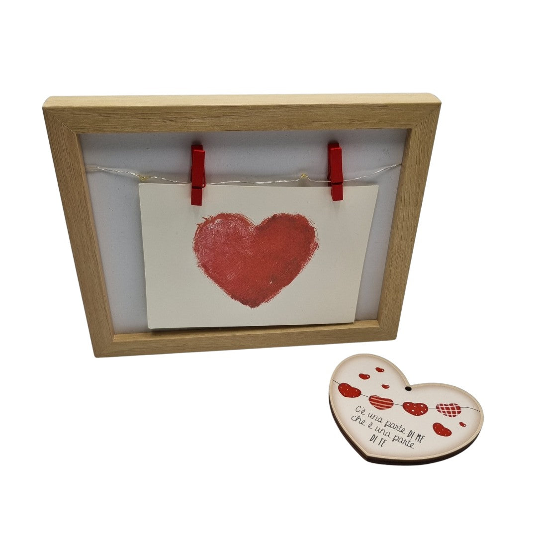 €15,00€15,00 €18,00/Portafoto con filo di luci led (batterie incluse) e magnete cuore in legno. Dimensioni cornice: 22 x 18 cm Dimensioni magnete: 10 x 7 cm