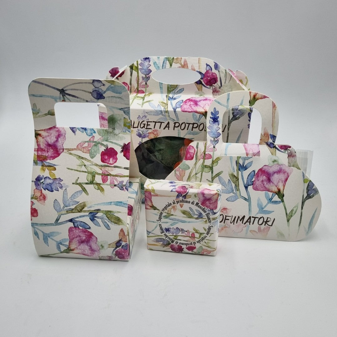 Set "bouquet", candela profumata, potpourri, tavolette profumate e saponetta